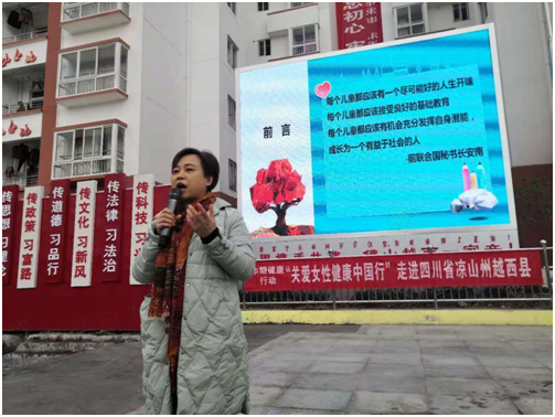 2020年是全面建成小康社会收官之年,也是决战决胜脱贫攻坚之年。为助力“三区三州”深度贫困地区妇女健康脱贫,全国妇联妇女发展部发起“巾帼健康行动—关爱女性健康中国行”。继首站云南怒江行取得圆满成功,获得当地广大群众积极热烈的反响后,11月10日,全国妇联妇女发展部走进了大凉山,在四川省凉山彝族自治州越西县越城镇城北感恩社区开展线下健康大讲堂活动。