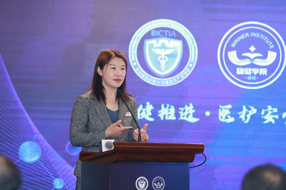 稳健医疗轮值CEO张莉亦应邀出席当天的启动仪式,并发表致辞。致辞时她表示,稳健医疗深耕医敷、感控防护领域30年,积累了大量的实战经验和技术优势。未来稳健医疗将与北京感染控制与消毒技术产业协会,携手共同促进感控防护领域学术交流、科技创新和成果转化,助力我国医护人员职业防护能力和职业安全水平的全面快速提升。