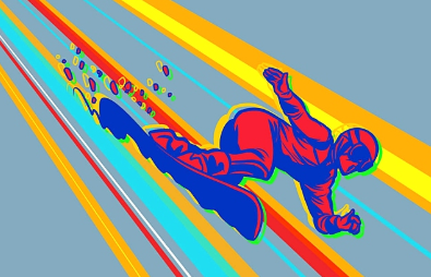 单板滑雪平行大回转兼具极高的观赏性和竞技性,赛道线路设计较长,旗门设置相对较远,滑降速度极快。项目规则最具魅力,两名运动员在平行设置的两个旗门赛道(蓝旗、红旗)同时出发,向下滑降,最终先行到达终点的运动员晋级下一轮,输者将直接淘汰,最终冠军要赢得6轮比赛。由于竞赛规则及项目特征的不同,平行大回转项目运动员所穿装备与其他项目差异较大:雪板偏窄偏长、雪鞋偏硬,极大限度地将运动员的滑行速度发挥到极致。