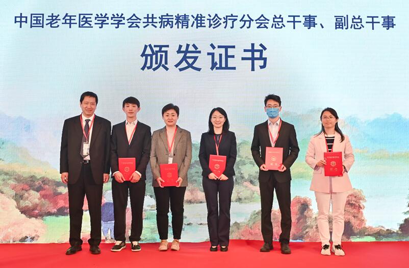 中日友好医院郑金刚教授当选中国老年医学学会共病精准诊疗分会第一届委员会会长,解放军总医院第二医学中心尹彤教授、中国医学科学院阜外医院周洲教授、辽宁省金秋医院陈晓虹教授、滨州医学院烟台附属医院慈莉娅教授、复旦大学附属肿瘤医院罗志国教授、西安交通大学精密工程研究所彭年才教授、中南大学湘雅医院药理研究所张伟教授当选副会长。