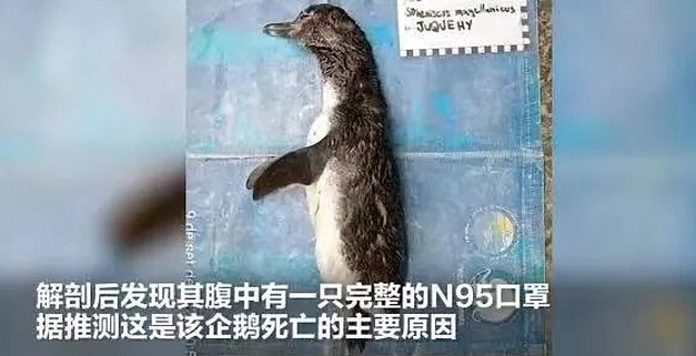 根据美国《环境科学与技术》杂志报道,全球每月使用和丢弃的口罩数量约达1290亿个,其中大多数是一次性的。国际环保组织Oceans Asia估算,2020年预计有15.6亿个口罩流入海洋,相当于产生了4680吨至6240吨的塑料污染,并在多种死亡海洋生物消化道中发现废弃口罩。例如,2020年9月,志愿者在巴西海滩上发现了一只企鹅的尸体,它的胃里就有一个口罩。