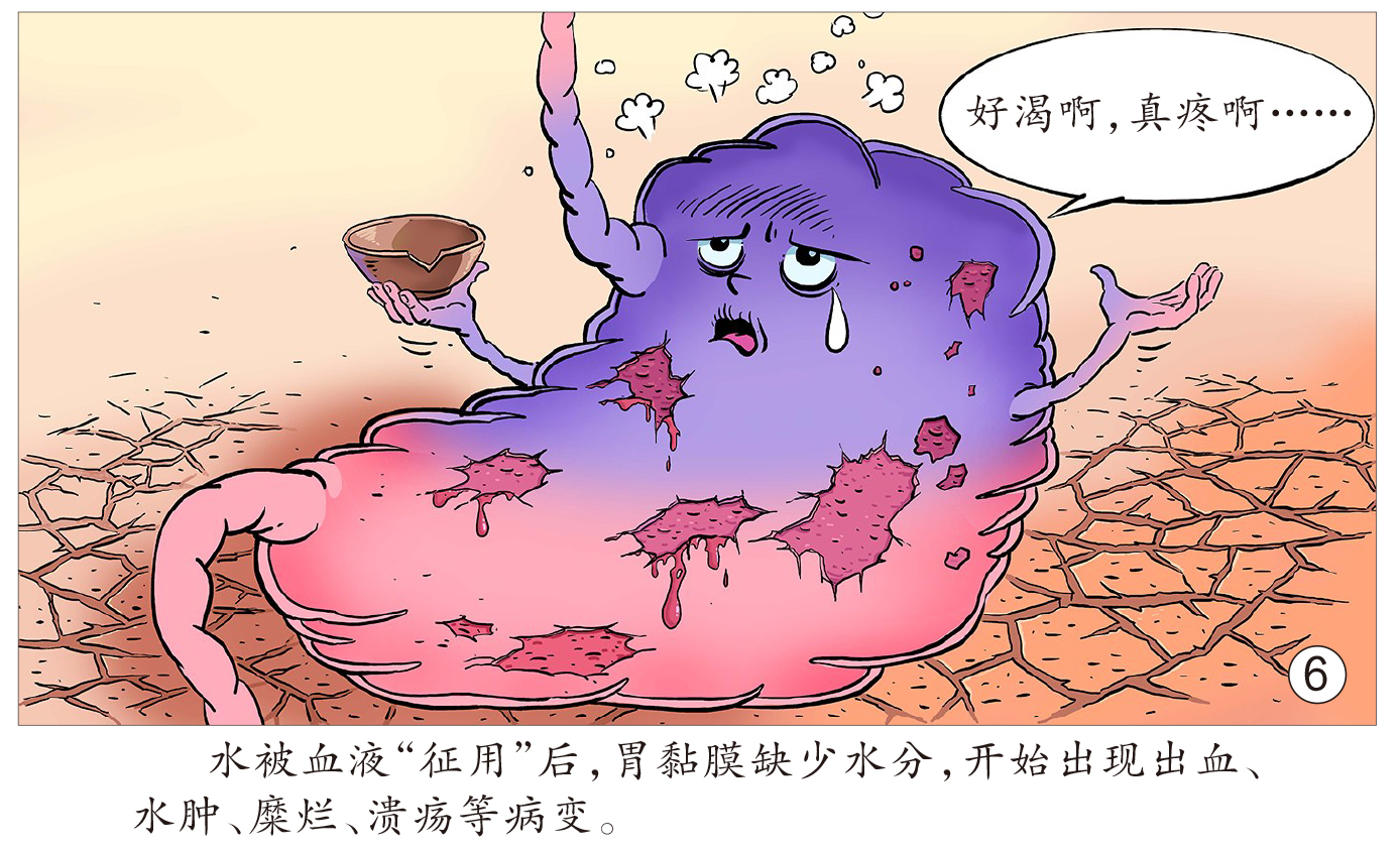 吃过多盐,全身组织中的水分子向血液方向移动后,胃黏膜细胞会因缺水而受损,甚至产生广泛性的弥漫性出血、水肿、糜烂、溃疡等病理改变,引起炎性再生反应,增加DNA合成和细胞增殖等,进而使癌症发生率升高。