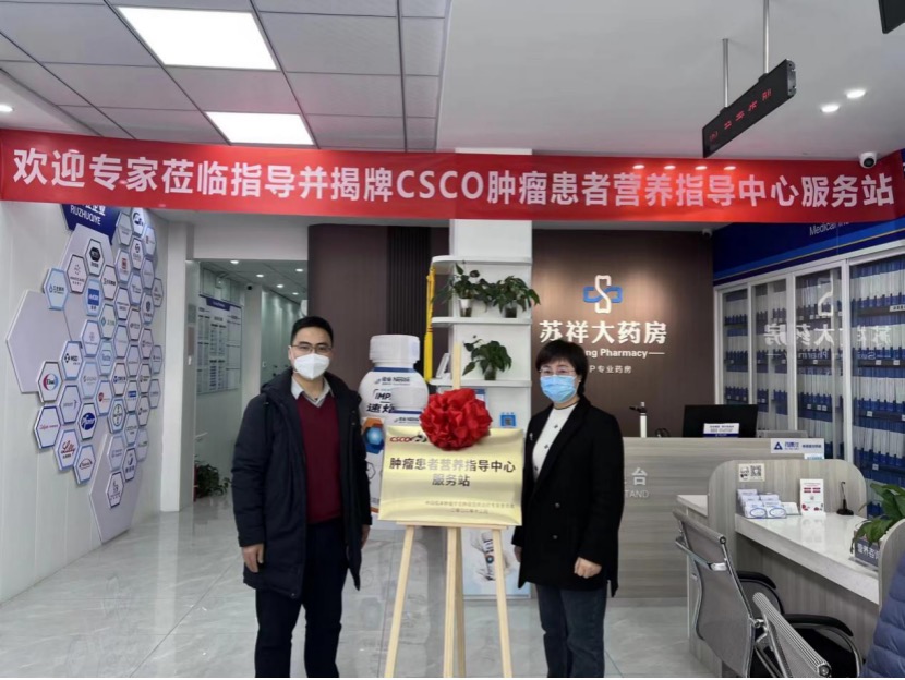 2023年1月4日,新年伊始,中国临床肿瘤学会(CSCO)肿瘤患者营养指导中心建设项目-CSCO肿瘤患者营养指导中心服务站试点-合肥站验收和揭牌仪式在安徽省合肥市高济苏祥大药房举行。安徽省立医院钱东教授、高济苏祥大药房副总经理王燕女士共同为服务站揭牌。