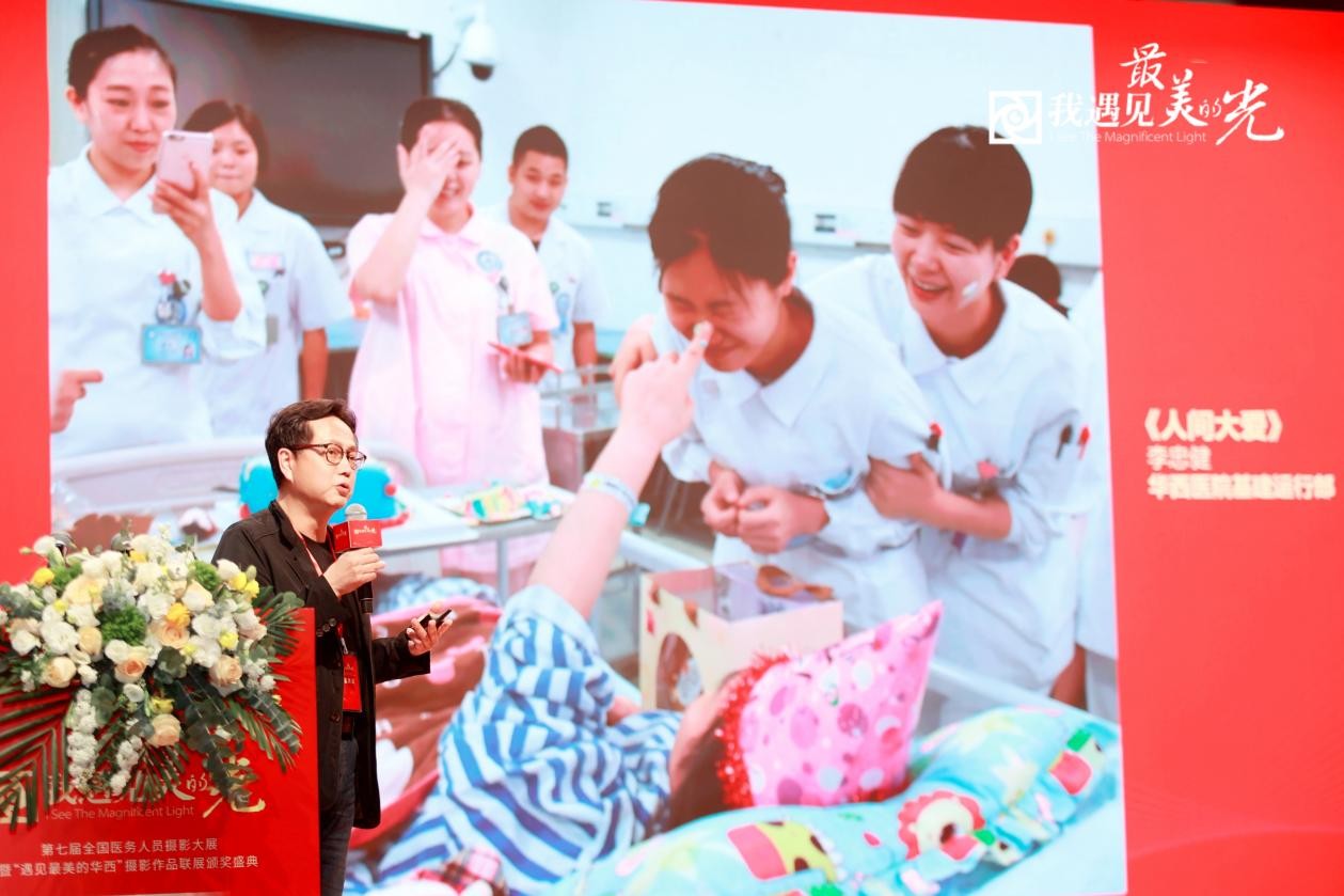 颁奖盛典之外,“我遇见最美的光”组委会与华西医院共同策展“遇见最美的华西”主题摄影展。现场展示的华西医院医务工作者及第七届全国医务工作者优秀的摄影作品,引来络绎不绝的人群驻足。