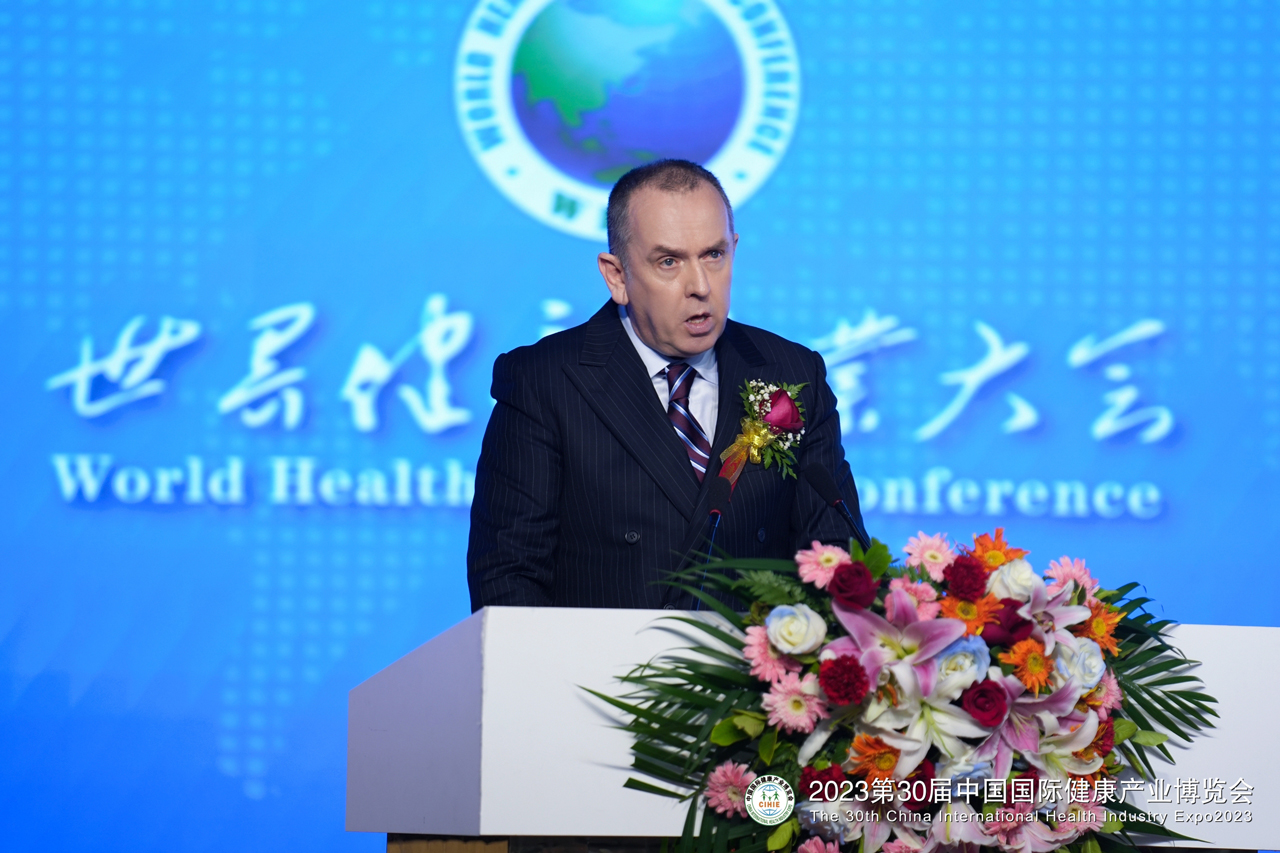 中国外商投资企业协会常务副会长曹宏瑛在发言时指出,世界健康产业大会以“健康产业发展新格局,共建国际化合作之路”为主题,邀请国内外政要、驻华使节、企业领袖、专家学者、权威媒体等莅临交流,突出国际性、科学性和专业性,给广大企业、业内精英带来新的理念、趋势及解决方案,促进世界健康产业的发展。