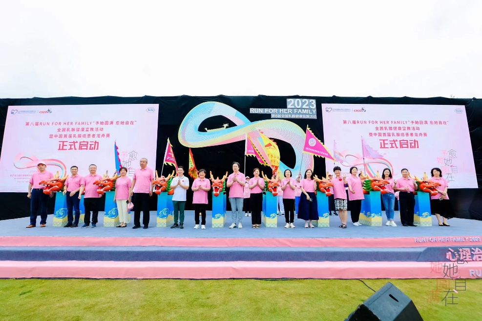 端午佳节,南京玄武湖上迎来了一场特殊的龙舟赛,8支由乳腺癌康复者和医护人员组成的龙舟队,在湖面乘风破浪力争上游,向社会展现了乳腺癌康复者摆脱疾病羁绊,努力归回正常生活积极向上的精神面貌。由北京爱谱癌症患者关爱基金会,中国临床肿瘤学会(CSCO)患者教育专家委员会和罗氏制药中国共同发起的第八届RUN FOR HER FAMILY全国乳腺健康宣教活动暨中国首届乳腺癌患者龙舟邀请赛正式启动。