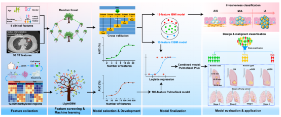 为此,广州医科大学附属第一医院何建行、梁文华教授团队等24家中心共同合作,在血浆多基因甲基化肺结节鉴别诊断工具的基础上,结合CT影像学特征和临床特征进行“升级”,研发出全球首个肺结节联合诊断模型——PulmoSeek plus。该算法结合了深度学习、人工智能等技术,可实现对肺部结节进行自动化处理和分析。