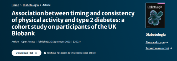 美国哈佛大学研究团队对9.3万参试者的相关数据展开深入分析,参试者没有糖尿病病史,平均年龄为62岁。研究人员统计了参与者上午(6:00~12:00)、下午(12:00~18:00)和晚上(18:00~24:00)3个不同时间段运动与糖尿病风险之间的关系。综合分析结果显示,上午和下午运动可使2型糖尿病风险分别降低10%和9%,而晚上运动与2型糖尿病风险之间没有明显关联。在调整了睡眠、饮食、教育和收入等其他变量后,研究人员发现新研究结果仍具有统计学意义。