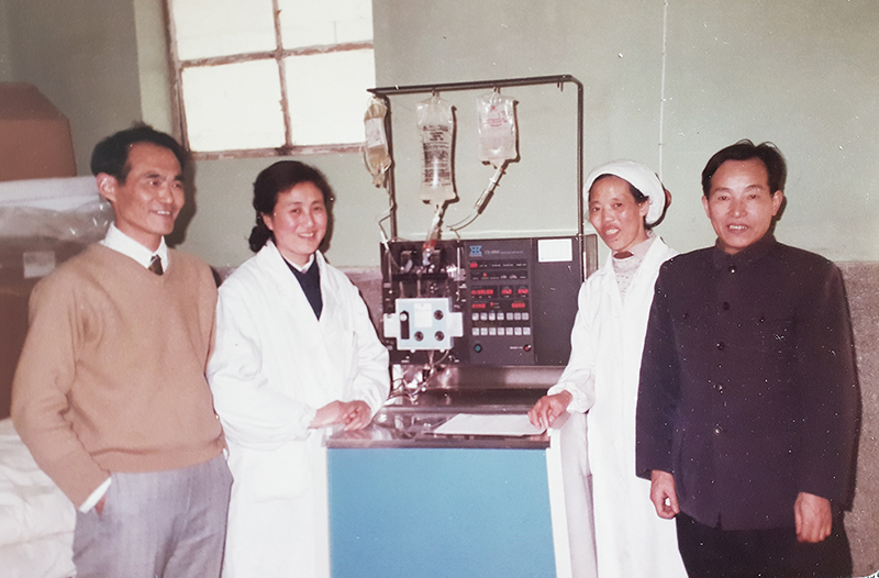 年轻时的王祖贻(右一)与同事们开展外周血干细胞采集工作。