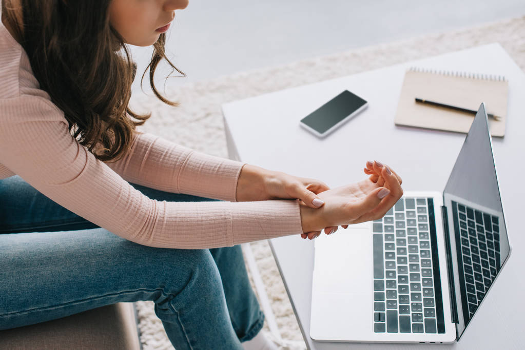 打字指:腕痛可放射至前臂。如果长时间用电脑、刷手机、干家务,手腕或手指持续保持固定姿势,便易患上腱鞘炎,多是桡骨茎突狭窄性腱鞘炎,即“打字指”,大多缓慢起病,女性高发。急性发作时,患者腕关节的拇指根部压痛、触痛,甚至会向拇指或前臂放射,严重时不能提东西,接触冷水等寒冷刺激可加重病情。以往,由于“新手妈妈”长时间抱小孩、炒菜或手洗衣物等,更易出现这类腱鞘炎,因此也被称为“妈妈手”,手工劳动者也是常见发病人群。