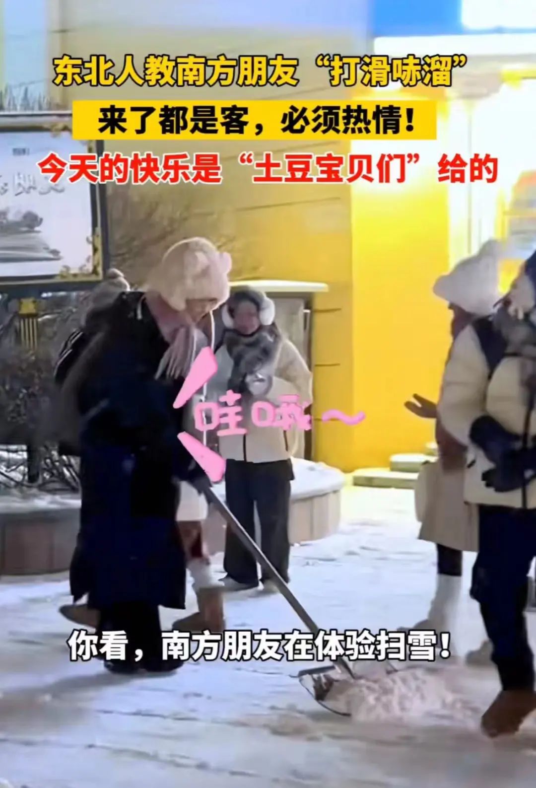 “南方小土豆”是大东北对南方游客的爱称,因为南方人大多身材瘦小,穿着浅色羽绒服,头戴可爱帽子,与高大、爱穿深色服装的当地人形成反差。继去年淄博掀起一阵“赶烤”热潮后,今年冬天,哈尔滨又因热情对待“南方小土豆”圈粉无数。同程旅行数据显示,刚过去的2024年元旦假期,哈尔滨旅游热度环比上涨240%,预计当地这波旅游热潮还将延续至寒假和春节。