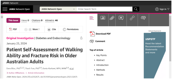 澳大利亚悉尼加文医学研究所的研究者纳入了26.7万名45岁以上成年人的相关数据,通过“你的健康是否限制你行走一公里”等问题调查参试者的行走能力,选项包括“完全没有限制”“有点限制”和“很多限制”三种。研究人员使用Cox比例风险模型分析了行走障碍与5年骨折风险的关系。结果发现,骨折风险随着行走障碍程度的增加而显著上升。相比能顺利步行一公里的女性,自称受到“很大限制”的女性骨折风险高出60%。