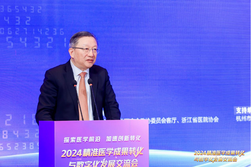 1月26日,由浙江省健康产业联合会政协委员会客厅、浙江省医院协会主办的2024精准医学成果转化与数字化发展交流会在杭州举行。本次会议融合多视角,共同探索医学领域学术前沿,加速科技创新转化,助力更多科技成果从“实验室”走向“生产线”。卢煜明、王建安、黄荷凤、谭蔚泓等四位中国科学院院士带来精彩主题分享,来自政府、行业协会、医疗机构、企业的相关负责人齐聚一堂,共同探讨精准医学从基础研究走向临床应用。