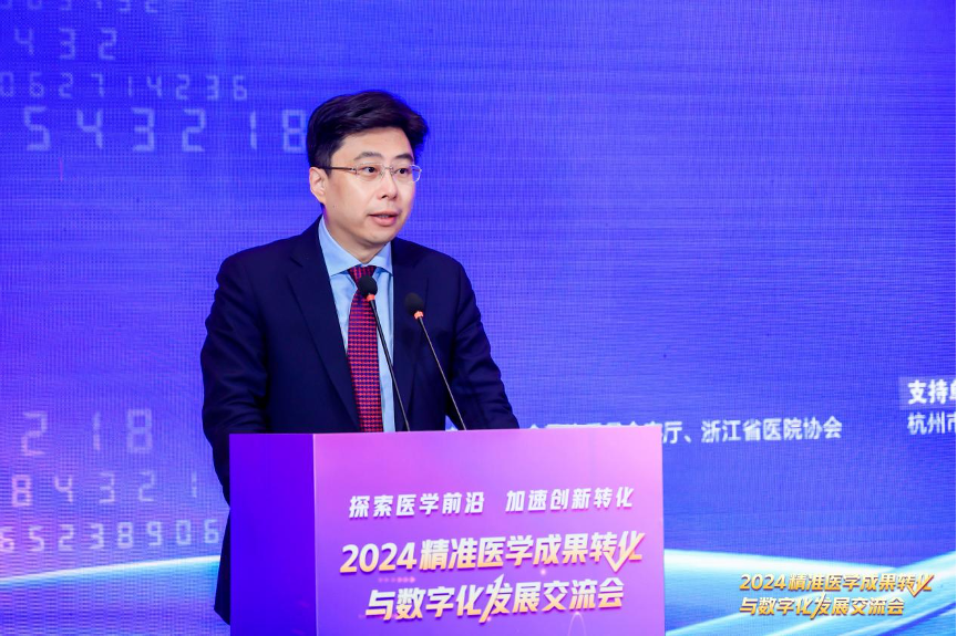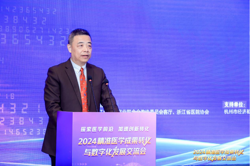 蔡秀军对各位嘉宾的到来表示热烈的欢迎和诚挚的感谢。他表示,医疗高质量发展是保障人民健康的重要环节,也是科技创新的重要领域,浙江在医学科技创新建设上非常重视。他指出,创新转化的前提是发现问题,解决问题的过程就是创新;创新转化需要跨界融合,即跳出学科发展学科,跳出医院发展医院;成果转化还需要加强产学研协同。随着生活水平的不断提升,民众对身体健康的重视程度不断提高,精准医疗市场需求将持续增长,发展及应用前景非常广阔。