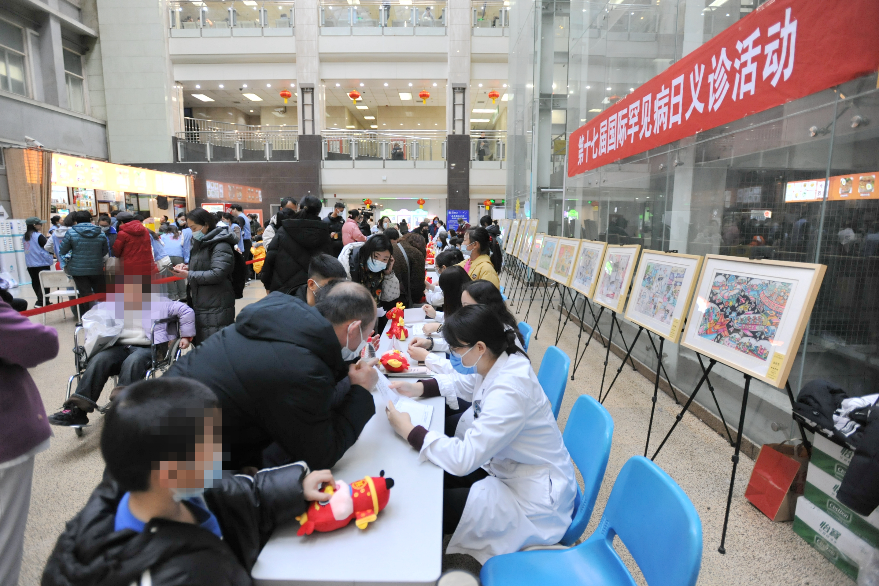 在北京儿童医院门诊楼地下一层,罕见病日义诊活动同期举办。除来自神经内科、内分泌遗传代谢科、免疫科、血液病科、功能神经外科等十余个临床科室专家外,参加义诊的还有康复科、护理部、医保办、医务社工部等科室人员以及舒缓医疗团队,共同为罕见病患儿提供全方位、多角度的义诊咨询服务。