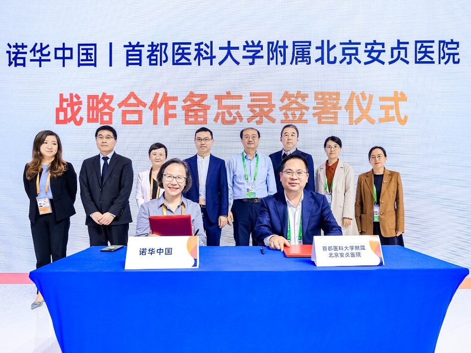 2024年11月6日,诺华中国与首都医科大学附属北京安贞医院(以下简称“北京安贞医院”)在第七届中国国际进口博览会(以下简称“进博会”)现场签署战略合作备忘录,双方希望在心血管疾病临床研究、学术交流等方面展开全面合作,通过优势互补、资源共享,推动学科建设与人才发展。