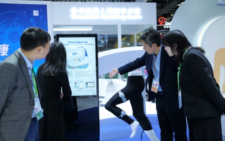 同样登陆进博会舞台的还有可穿戴式康复传感器,适用于关节置换术后康复过程中关节活动度的测量和记录,配合健康APP可使康复训练方案更科学、训练过程更准确、训练结果更有效。