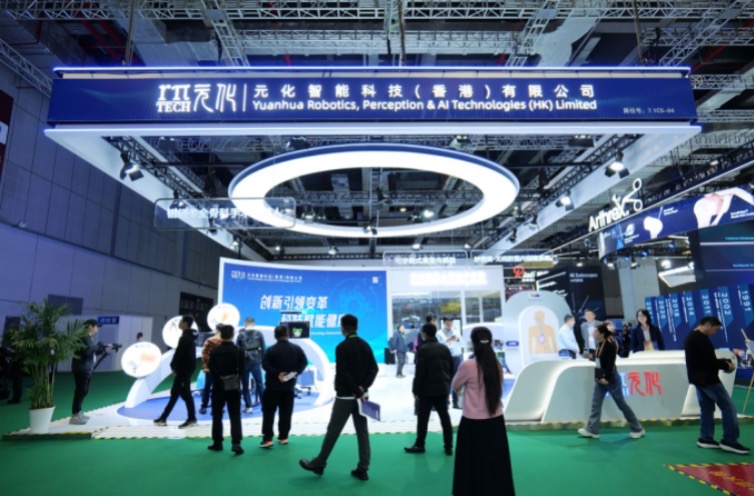 11月5日至10日,第七届中国国际进口博览会上,元化智能(香港)亮相了港产AI手术机器人,参观者可以感受髋、膝、单髁关节置换的真机实操全流程体验。