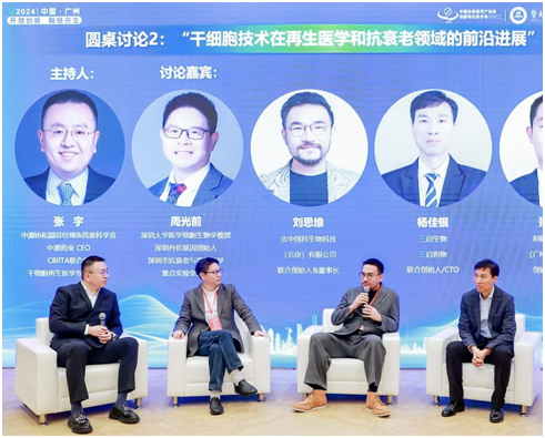 在CBIITA细胞与基因治疗转化论坛的干细胞再生医学与抗衰专场题为“干细胞技术在再生医学和抗衰专场”的圆桌对话中,中源协和首席科学官张宇、深圳大学医学细胞生物学教授周光前、北中创科生物科技的创始人刘思维等专家,对于干细胞技术在抗衰领域的前沿发展进行了多角度、多维度的深度探讨。