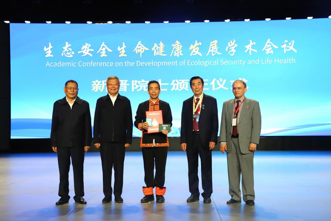 联合国-国际生态生命安全科学院总院副主席、北高加索分院主席、俄罗斯远东联邦北高加索国立技术大学生态与技术领域安全系系主任阿尔博罗夫·伊万·达维多维奇,联合国-国际生态生命安全科学院副主席、中国院院长、中国医药教育协会终身荣誉会长黄正明,全国政协常委、政协第十三届全国委员会原秘书长、九三学社中央原副主席赖明,中央组织部干部一局原局长刘晔华,为覃迅云教授颁发了联合国-国际生态生命安全科学院院士证书。