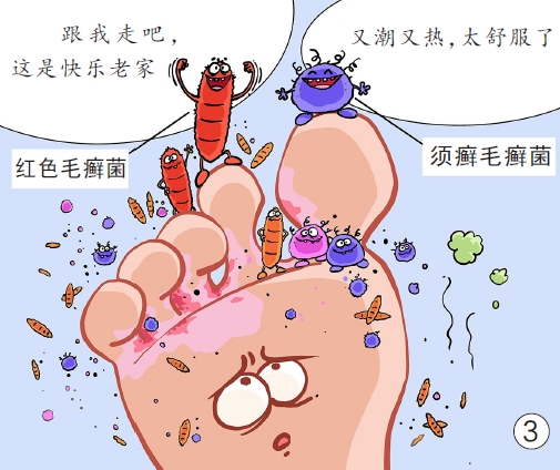这种温热、潮湿的环境,给红色毛癣菌、须癣毛癣菌等皮肤癣菌繁殖创造了有利条件,让双脚成了真菌“培养皿”。