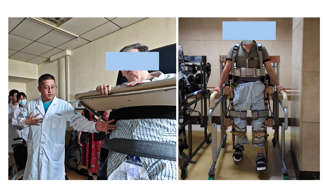 术后第 3 天,团队为患者启动个体化脊髓电刺激程控调试:通过体外蓝牙设备实时调节电极触点的刺激参数与电场分布,帮助患者缓解疼痛。在此基础上,团队同步构建“刺激-康复”一体化方案,将神经调控与康复训练深度融合,探索功能恢复的协同机制。该模式通过脊髓电刺激模拟自然神经信号,调节病变水平以下脊髓神经网络兴奋性,唤醒“休眠”的神经回路,为运动与感觉功能恢复奠定电生理基础。