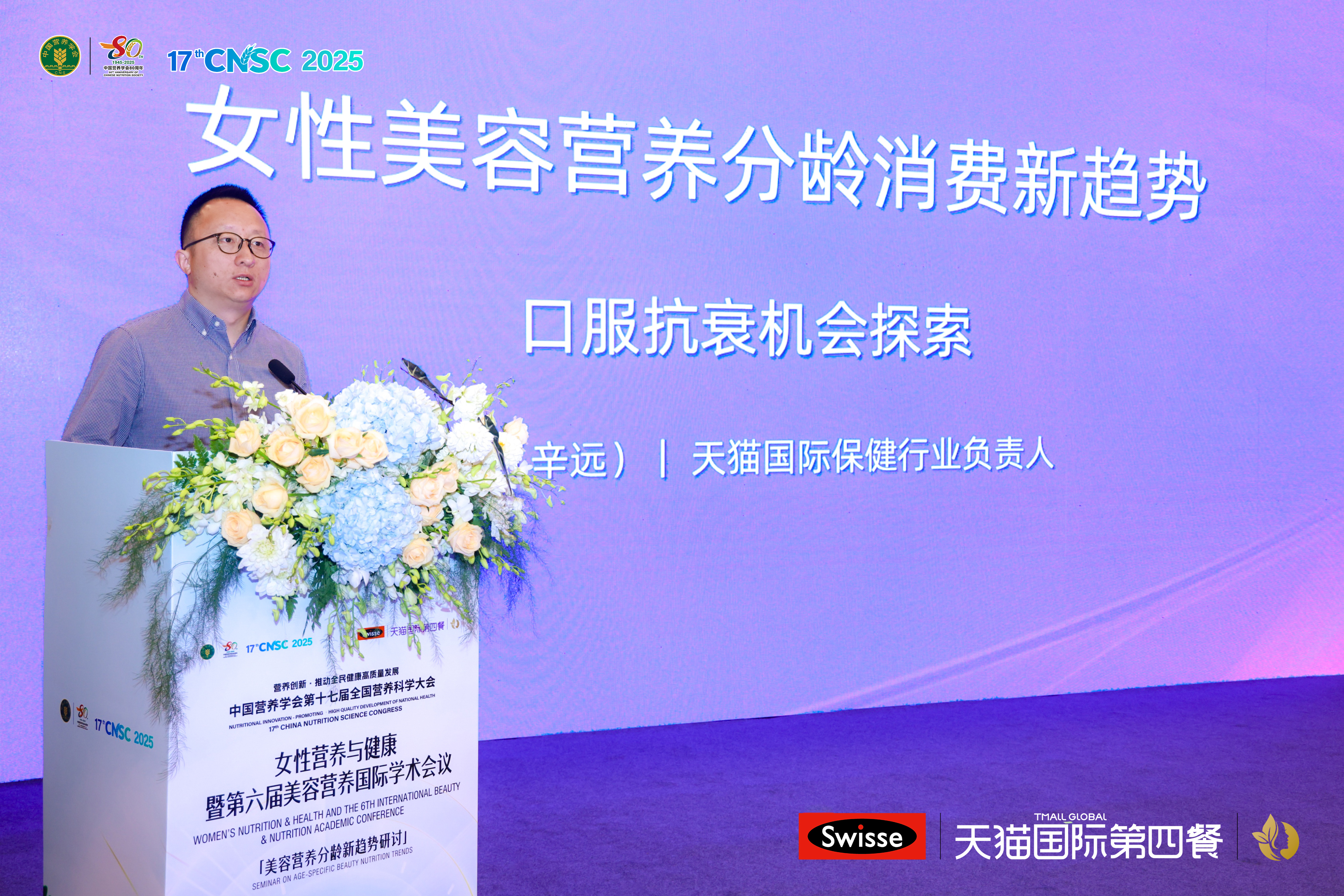 健合集团中国区科学交流总监刘威则从企业视角进行分享道:“据艾瑞咨询《2025年中国口服美容行业研究报告》显示,中国口服美容用户规模已超6500万,分龄化需求显著。基于此,Swisse斯维诗以科研为核心,构建覆盖全生命周期的产品矩阵,而天猫平台则为我们提供了精准触达用户的关键平台,共同推动科学营养普及。”