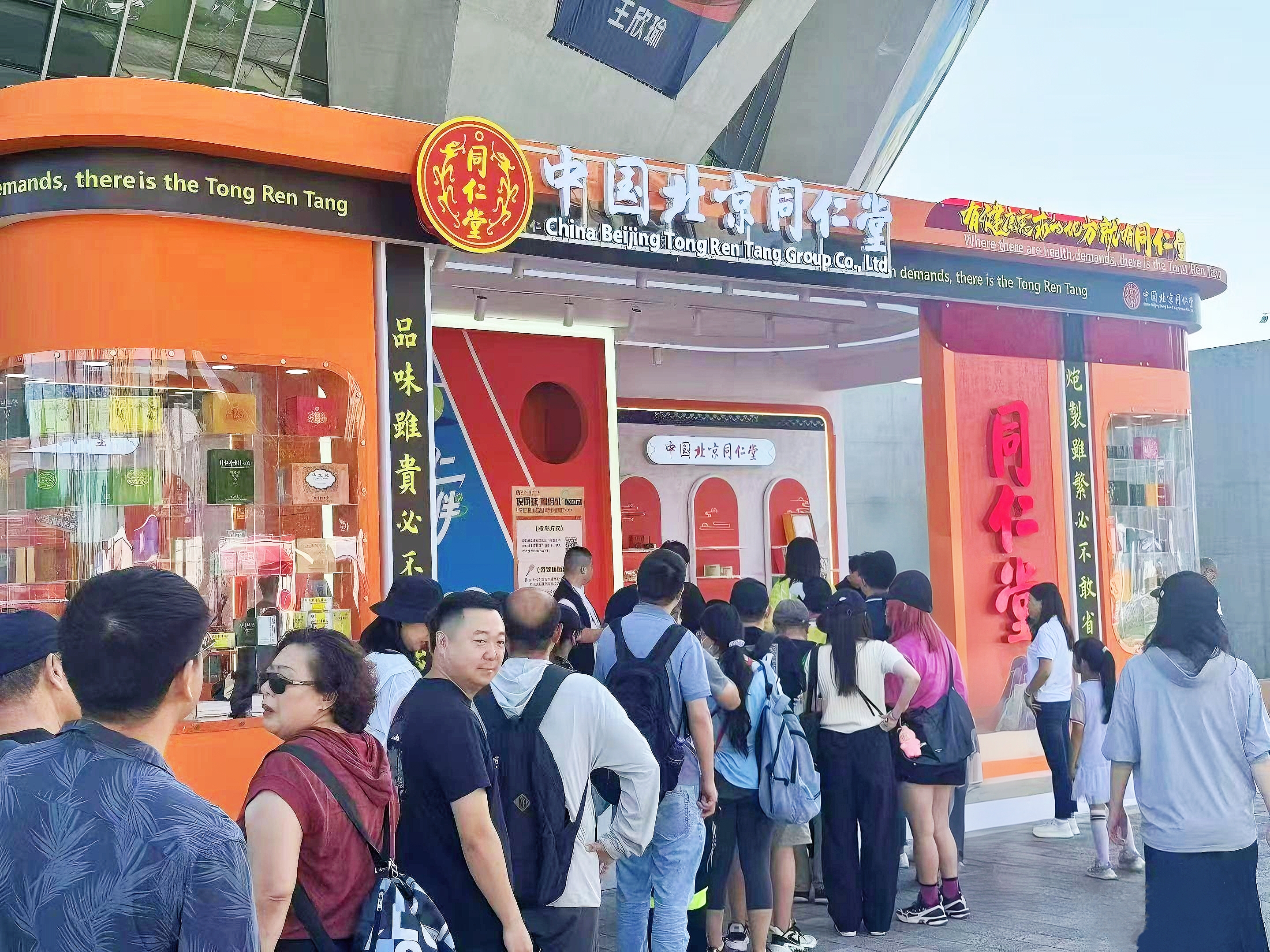 在钻石球场旁边的广场上,同仁堂中医药展区格外引人注目。主题展台以“网动同仁,一生相伴”为主题,展示了同仁堂集团旗下的诸多板块,既有传统中药和现代健康产品,又有大健康产品和文创系列。