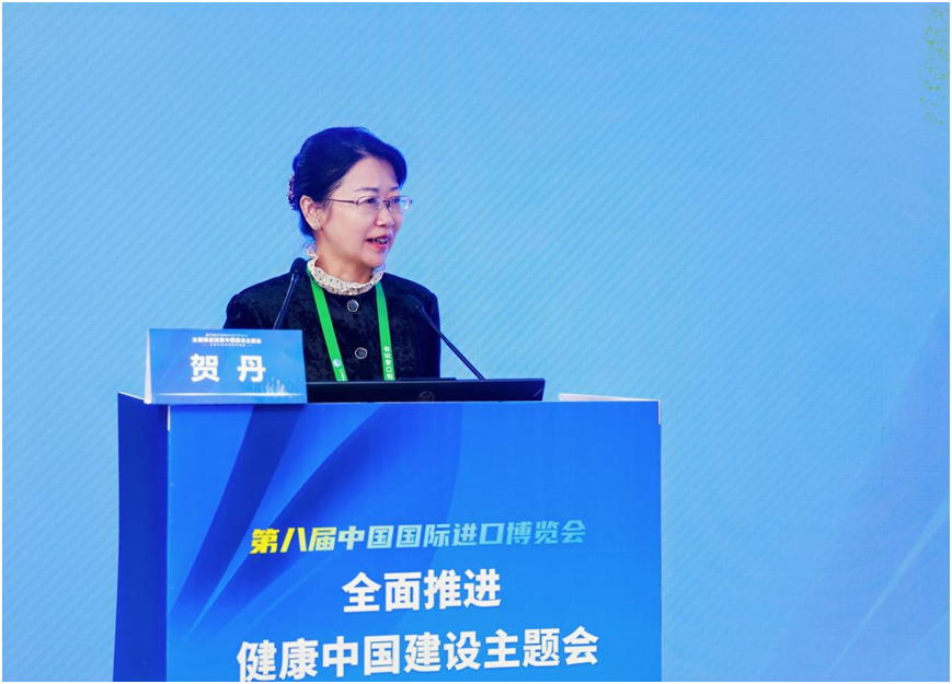 贺丹在开幕式主持中表示,党的二十届四中全会就加快建设健康中国、促进人口高质量发展进行了相应谋划,充分体现了以习近平同志为核心的党中央对人民健康和人口高质量发展的高度重视。在“十四五”规划圆满收官、科学谋划“十五五”发展蓝图的关键时期,我们借助进博会这一国际平台举办本届主题会,旨在通过高水平对外开放,践行中国在全球健康治理中的理念与方案,与各方共享发展机遇。中国人口与发展研究中心作为国家卫生健康委的直属事业单位,一直以来都发挥着国家智库的重要作用,长期致力于健康中国战略的推进与实施,本次主题会议将促进各方交流,加强务实合作,为全球健康治理分享中国的实践经验,助力人类卫生健康共同体的建设。