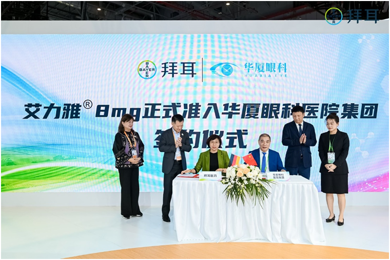 11 月 8 日,2025 年中国国际进口博览会(进博会)现场传来重磅消息 ——拜耳医药保健有限公司与华厦眼科医院集团正式签署合作协议,刚刚在中国获批上市的阿柏西普 8mg(阿柏西普 8mg)眼内注射溶液即日起全面准入华厦眼科医院集团。该项合作的达成,标志着全球抗 VEGF 药物与国内权威眼科医疗资源实现深度融合,将为千万眼底病患者带来治疗新选择。