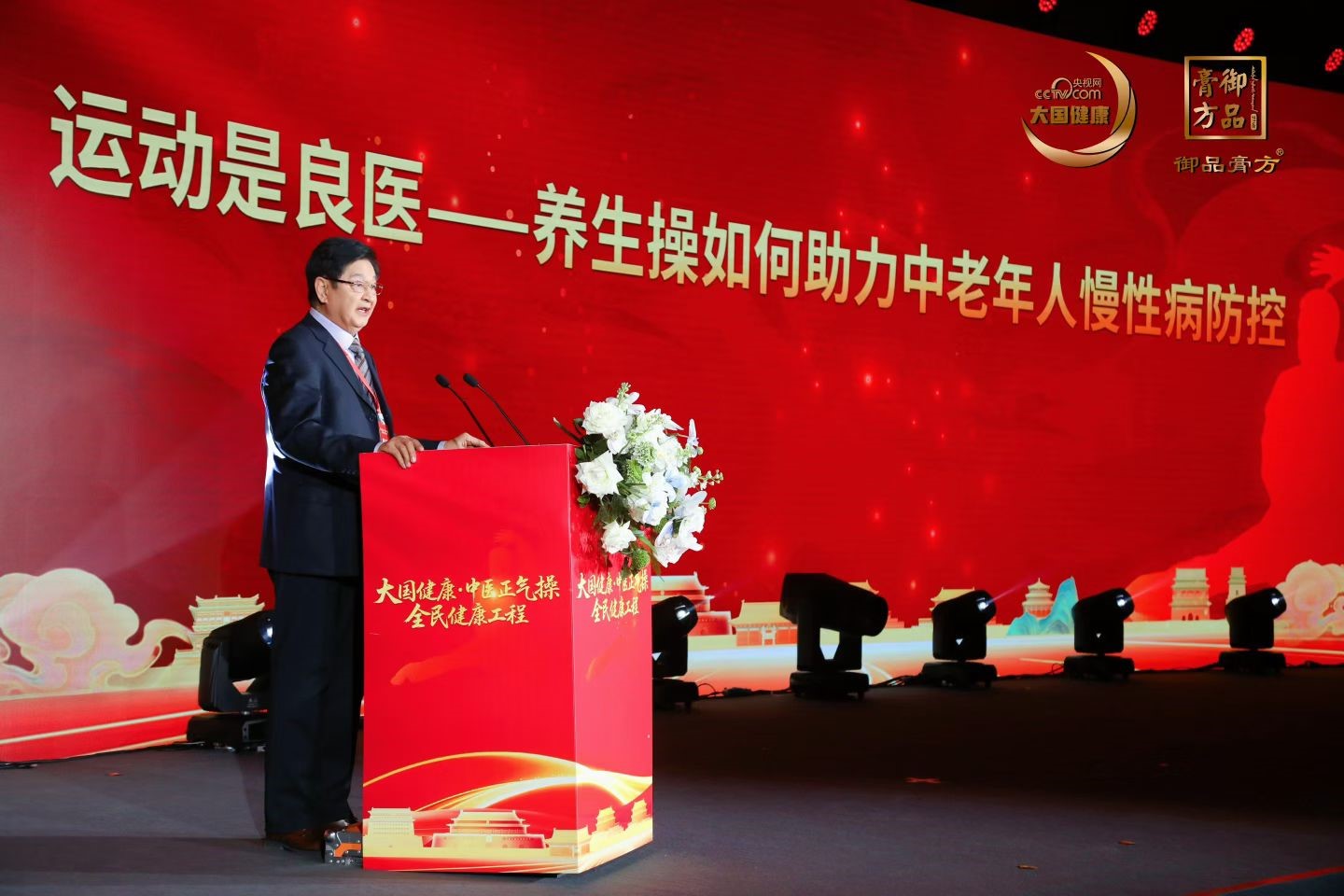 中国老年学和老年医学学会老年病学分会副会长高军发表“运动是良医--养生操如何助力中老年人慢性病防控”主题演讲。