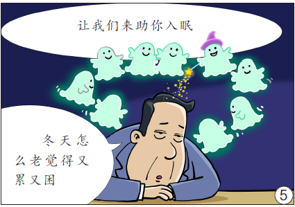 图5:冬天日照时间短,松果体超额工作,褪黑素“产能”过剩,便让人总觉得困倦乏力、没精神。