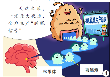 图4:光照弱时,脑内的松果体会加速分泌褪黑素,帮人体切换到休息状态。