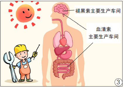 图3:人体就像一座“情绪工厂”,生产的褪黑素、血清素与情绪息息相关,效率则受光照影响。
