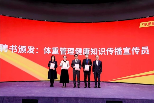 启动仪式上,胡永华为世界冠军覃海洋、综艺节目辩手颜如晶颁发了“体重管理健康知识公益传播大使”聘书,并为全国科普工作先进工作者、国家卫生健康委百姓健康频道新媒体传播委员会主任委员 高巍、首都医科大学附属北京朝阳医院心脏中心 副主任医师 郝鹏、上海市同仁医院妇产科主治医师 孙旖、复旦大学附属华山医院内分泌科副主任医师 苗青,颁发了“体重管理健康知识传播宣传员”聘书。