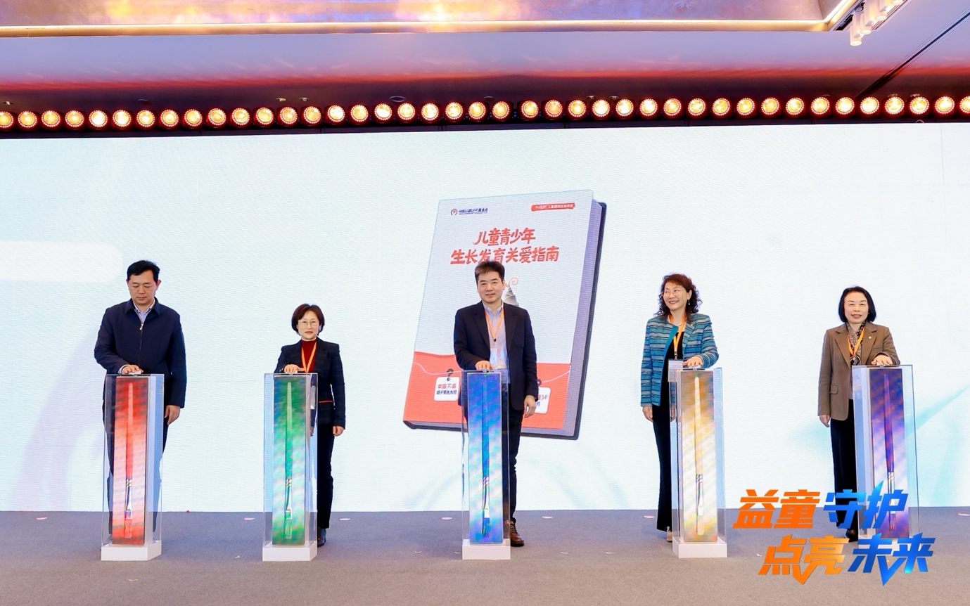 在《儿童青少年生长发育关爱指南》发布仪式上,罗小平、巩纯秀、梁雁、杨玉等专家与爱心企业代表共同见证发布。