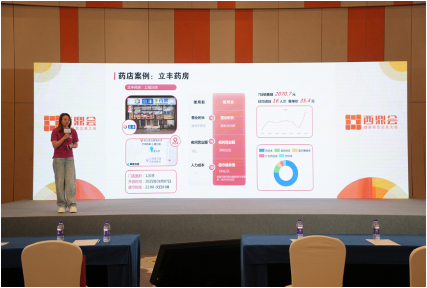 展会期间,微店24KA大客户总经理于和琪出席大会并发表主题演讲,围绕“AI+真人云值守”如何赋能药店实现24小时智慧营业,分享了在全国超33000家门店的运营经验。她介绍,通过智能硬件+AI算法+真人远程看店服务,可为药店提供低成本、高安全、易部署的云值守方案:单店改造仅需万元级投入,夜间值守成本较传统人工下降60%以上,让药店老板安心睡个好觉。