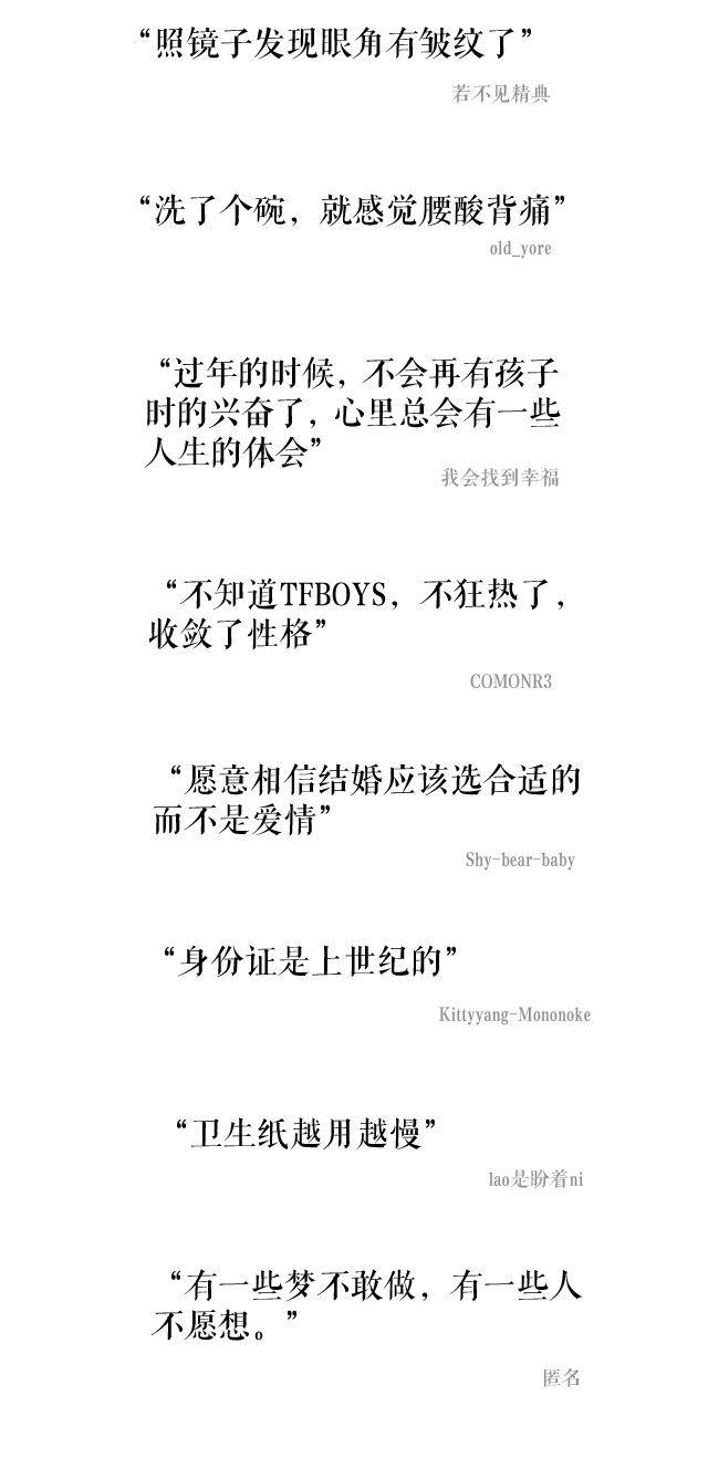 小时候,总盼望着变成大人;年轻的时候,总开玩笑说自己老了。你以为人真的是慢慢变老的吗?其实不是,某一天你会突然发现自己老了。那些隐藏在身体里的衰老迹象,那些突然迸发出的成熟想法,你是不是和他们一样,也有着这样的瞬间……