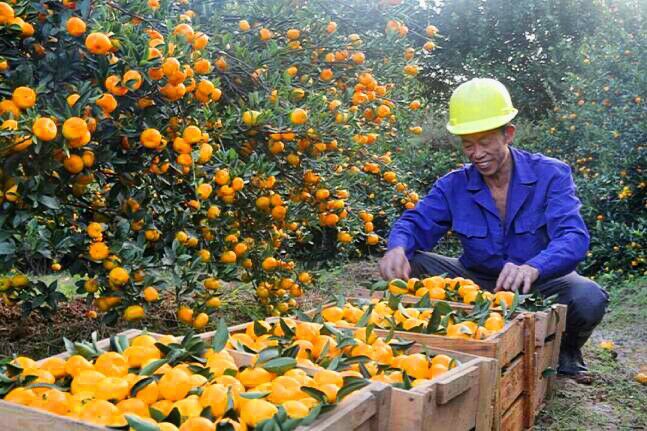 每到收桔子的时候,爸爸要一个一个将桔子齐根剪下,最大程度地保证桔子的完整,最小程度地伤害橘树。
