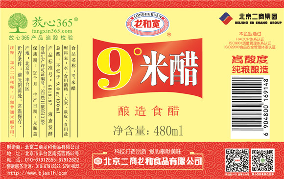据悉,目前龙和宽9°米醋产品新旧包装正在更替,经过一段时间过渡,广大消费者将可以在北京及周边地区的商超等渠道购买到最新版的龙和宽9°米醋。