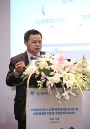 2016年4月23日,由中国医疗保健国际交流促进会主办,雀巢健康科学支持的“中国疾病状态人群营养管理项目”在天津召开。该项目旨在提高临床医生和患者对营养管理价值的重视,期望通过医生教育和患者教育,以及借助营养评估量表等营养管理工具,互动体验等方式,帮助广大住院患者和社区患者加强营养管理,提高疾病康复速度,逐步提升中国疾病状态人群的总体营养管理水平和健康水平。北京医院韦军民教授担任本次大会主席,中国医疗保健国际交流促进会副会长王铁城出席会议并发表讲话。