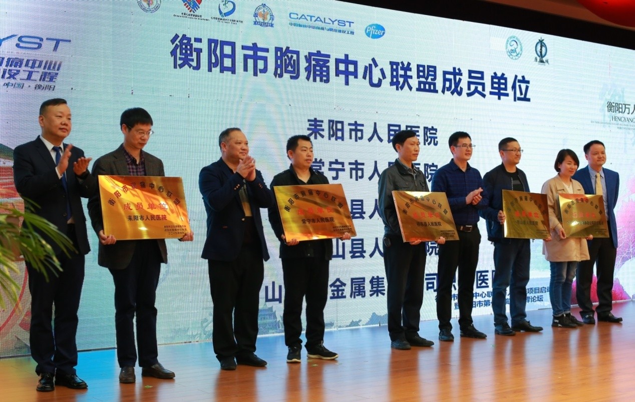 在衡阳市政府唐时明副秘书长、刘英主任、心血管健康联盟副主席、中国胸痛中心认证工作委员会主任委员霍勇教授、中国胸痛中心湖南联盟郑昭芬副主席、衡阳市中心医院申惠龙院长、辉瑞南中国区周海涛总经理等人的参与及众多参会代表的见证下,“衡阳市胸痛中心联盟”正式成立,并对衡阳市第一届胸痛中心联盟主席单位和成员单位授牌。衡阳胸痛中心全市模式建设方案也随着衡阳市胸痛中心联盟成立正式印发通知,以在全市范围内形成一体化的胸痛中心平台,实现对全市范围内胸痛患者救治的全域覆盖、全民参与和全程管理。