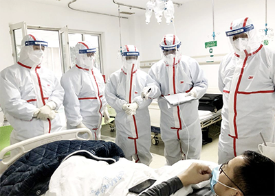 1月25日上午,国家中医药管理局防治新冠肺炎高级专家组组长之一、中国中医科学院广安门医院仝小林院士(右一),和专家们赶赴武汉抗疫临床一线查房,以优化中医药诊疗方案。