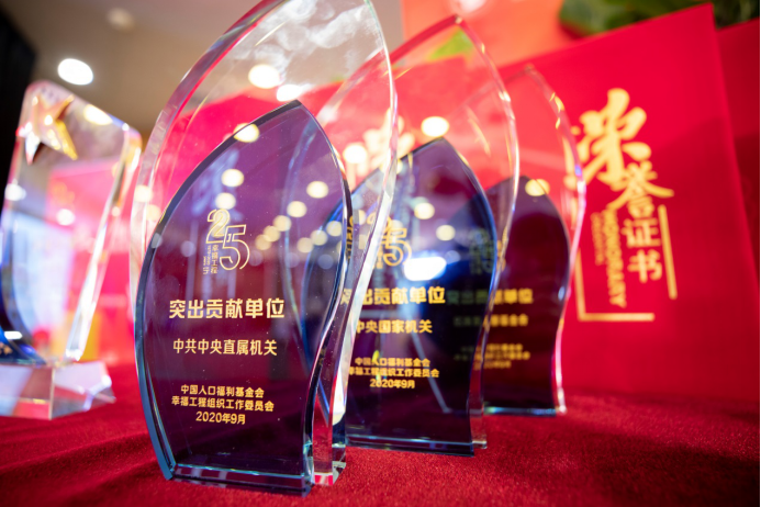 过去的25年里,幸福工程得到中央和国家机关广大干部职工以及爱心企业、爱心个人的捐赠,许多基层幸福工程工作者扎根一线管理项目,帮扶的母亲中也涌现出一批自强自立的典型。活动现场,幸福工程组委会从众多捐赠者、志愿者、受助者以及合作者中,选取了部分代表进行答谢,其中,突出贡献单位为中共中央直属机关、中央国家机关、招商局慈善基金会,最美公益伙伴为新华网股份有限公司、阿里巴巴(中国)有限公司、内蒙古自治区计划生育协会、福建省计划生育协会等31家单位,最美爱心团队为中央组织部、新华通讯社、人民日报社、中国文联、中直管理局、中央广播电视总台、中国人民银行、中国光大集团股份公司、中国农业银行、国家卫生健康委、国家机关事务管理局等128家单位,志愿之星为张晨霞、刘长文、简军、王刚等59位同志,创业之星为黄妹香、田金珍、闫金凤等10位受助母亲。